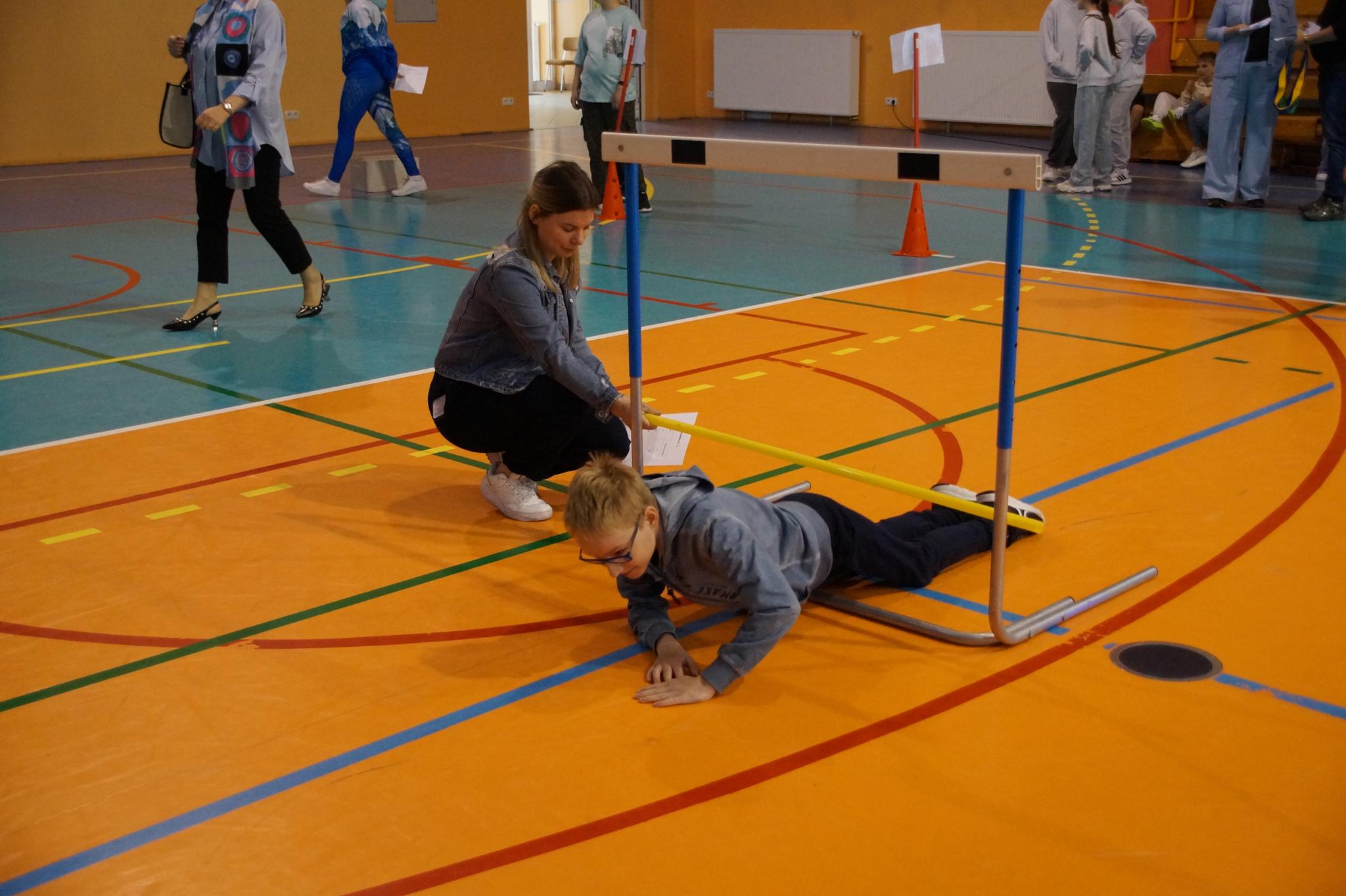 Następnie odbyły się konkurencje sportowe, które miały charakter integracyjny i aktywizujący. Uczestnicy mierzyli się z różnorodnymi zadaniami – bieg w kaloszach, tor przeszkód, przeciąganie liny, strzały w specjalnych okularach, rzuty woreczkami, konkurencje z balonami i wiele innych. Niektóre z aktywności pozwalały uczniom choć na chwilę doświadczyć trudności sensorycznych czy ruchowych z jakimi mierzą się osoby w spektrum autyzmu. Była to praktyczna lekcja empatii i zrozumienia, a przede wszystkim wspaniała zabawa i okazja do współpracy.
