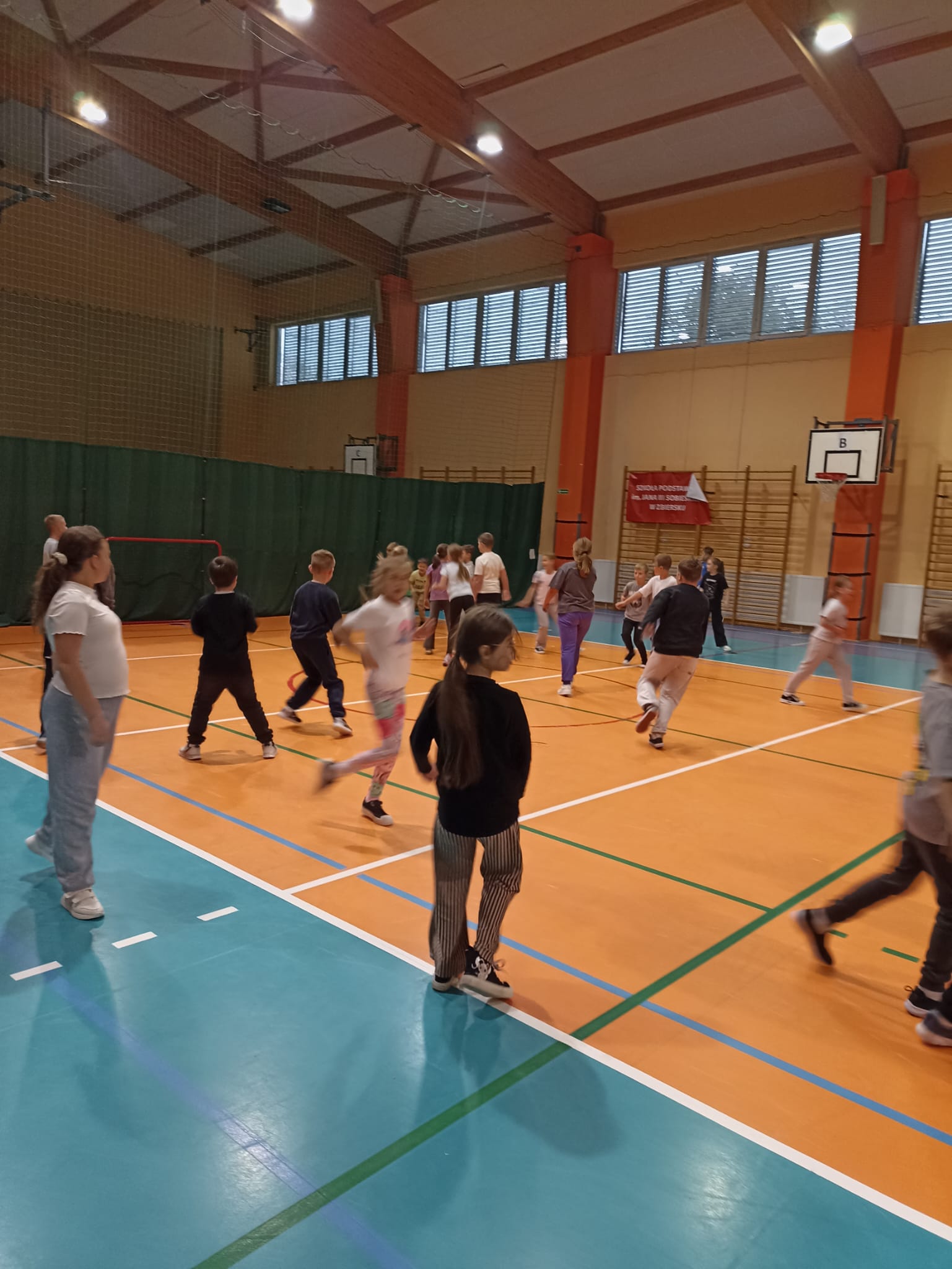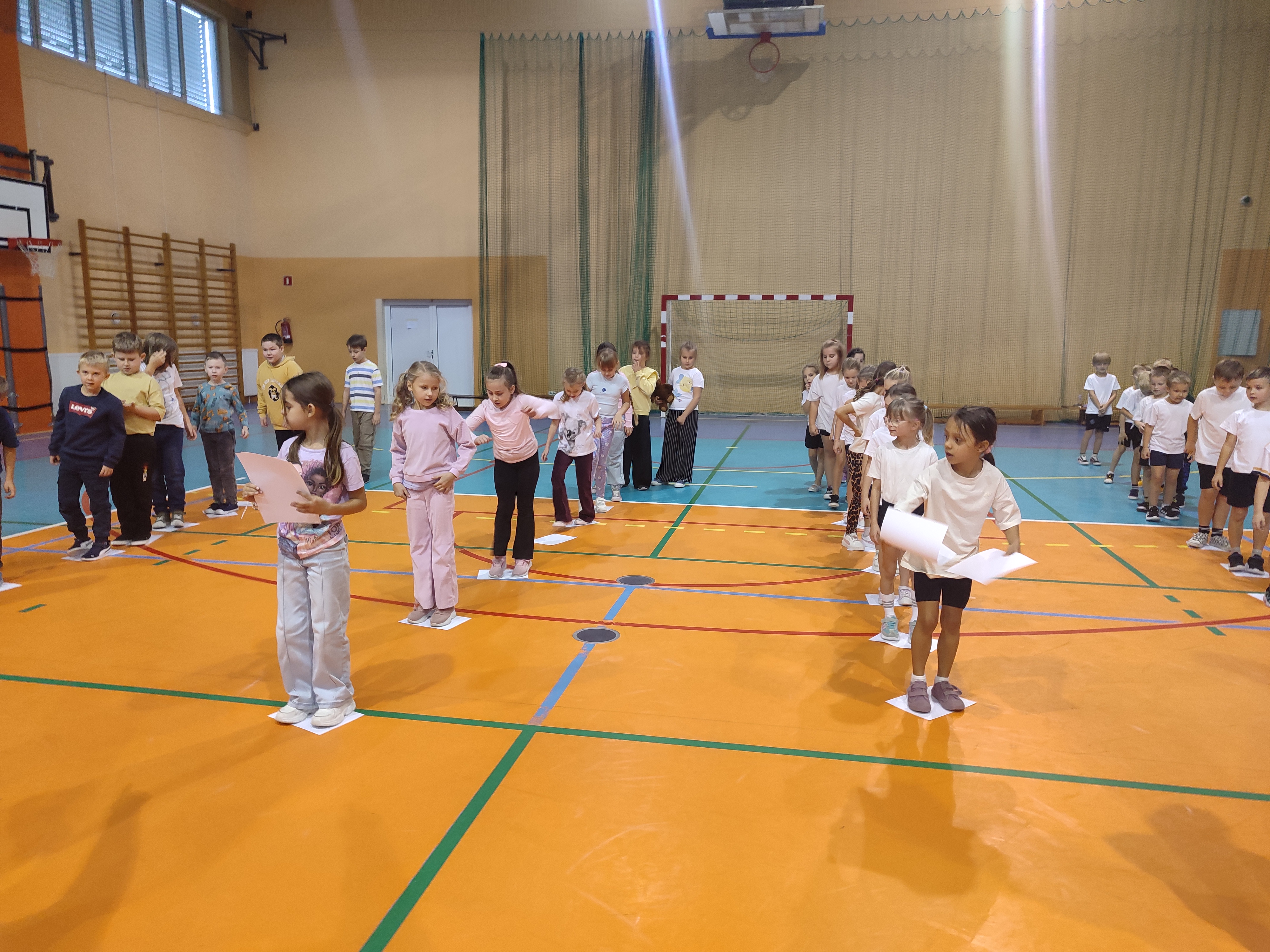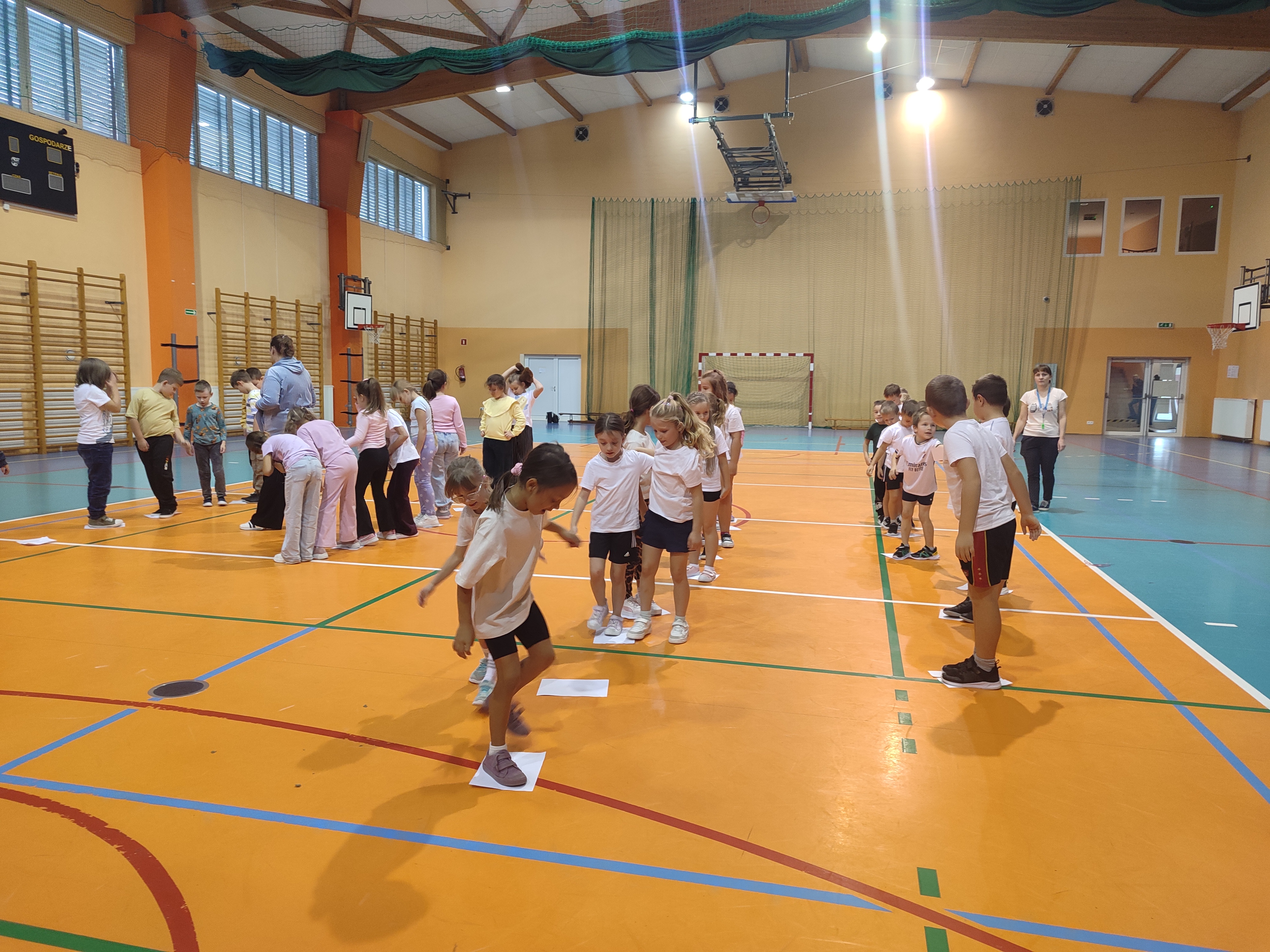 Na hali sportowej najmłodsi uczestniczyli we wspólnych zabawach ruchowych – promujących aktywność fizyczną, współpracę i radość z bycia razem.
