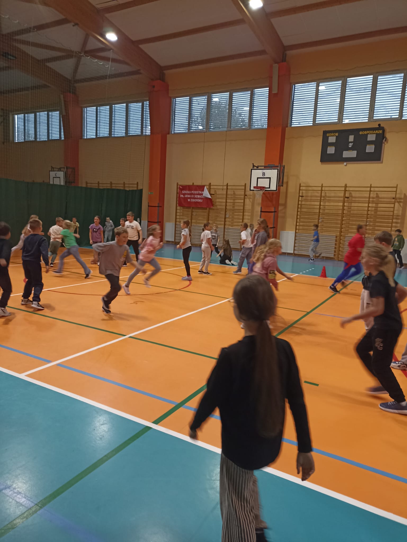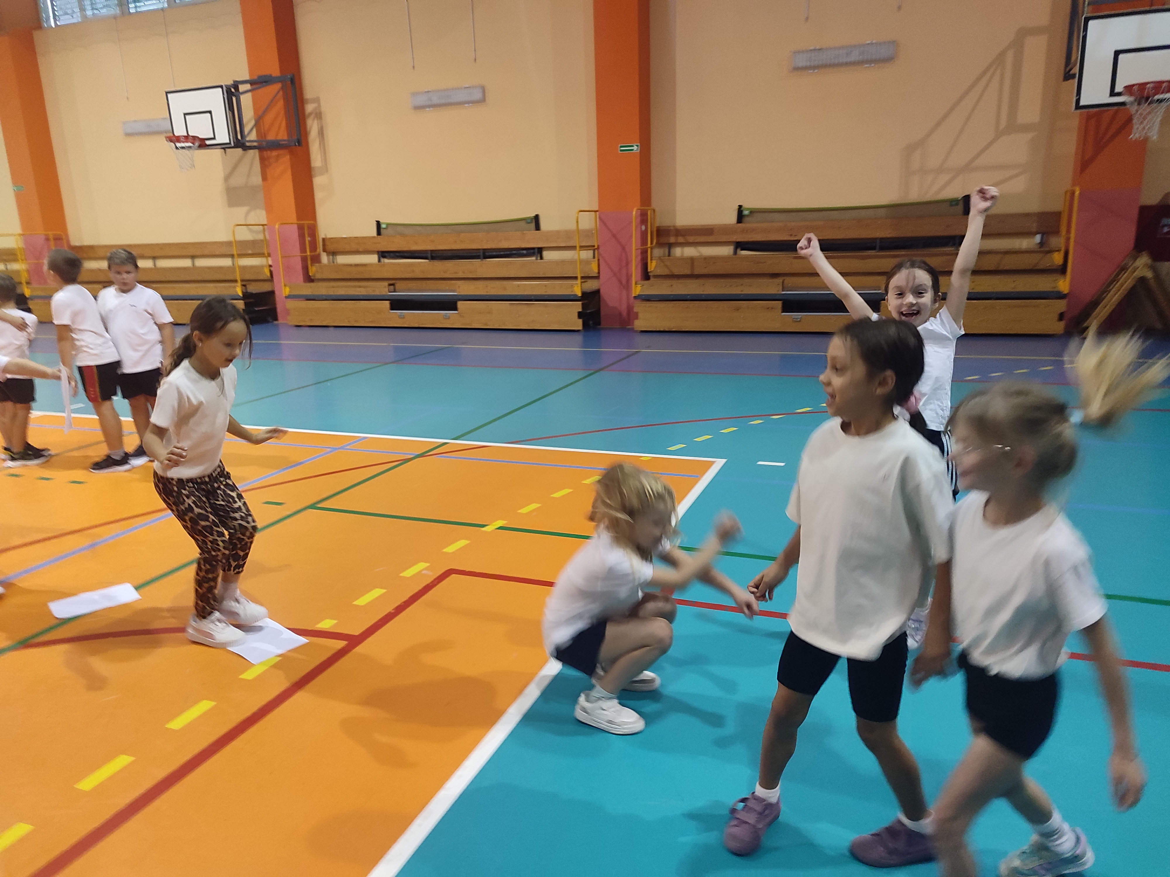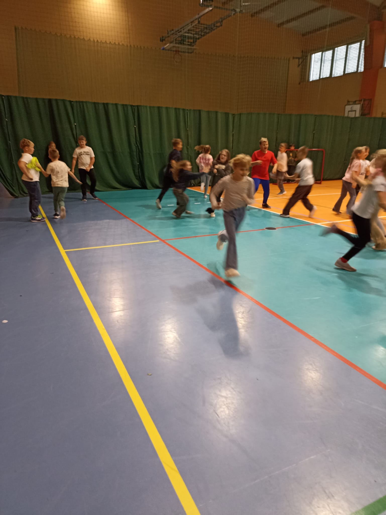 Na hali sportowej najmłodsi uczestniczyli we wspólnych zabawach ruchowych – promujących aktywność fizyczną, współpracę i radość z bycia razem.