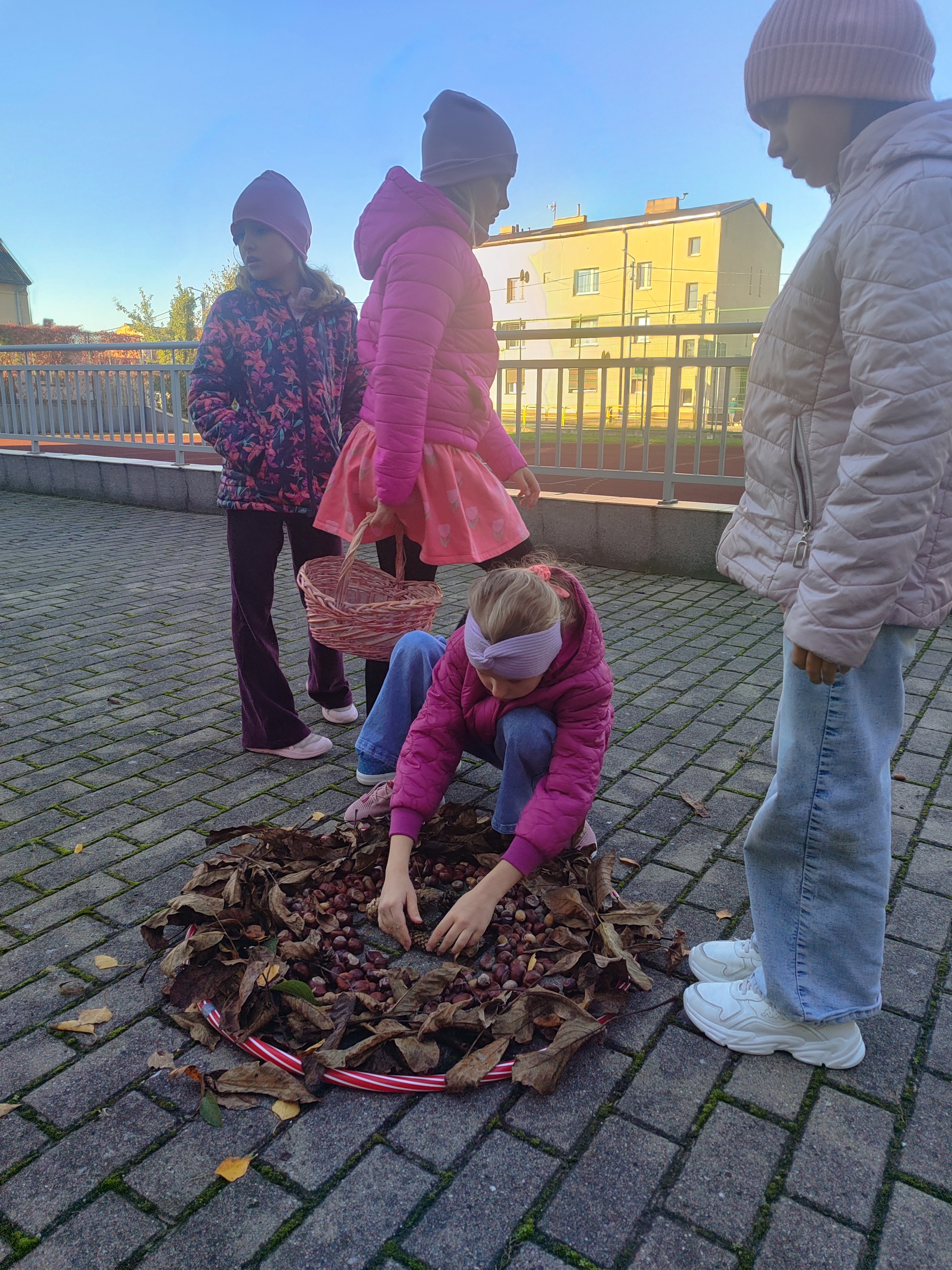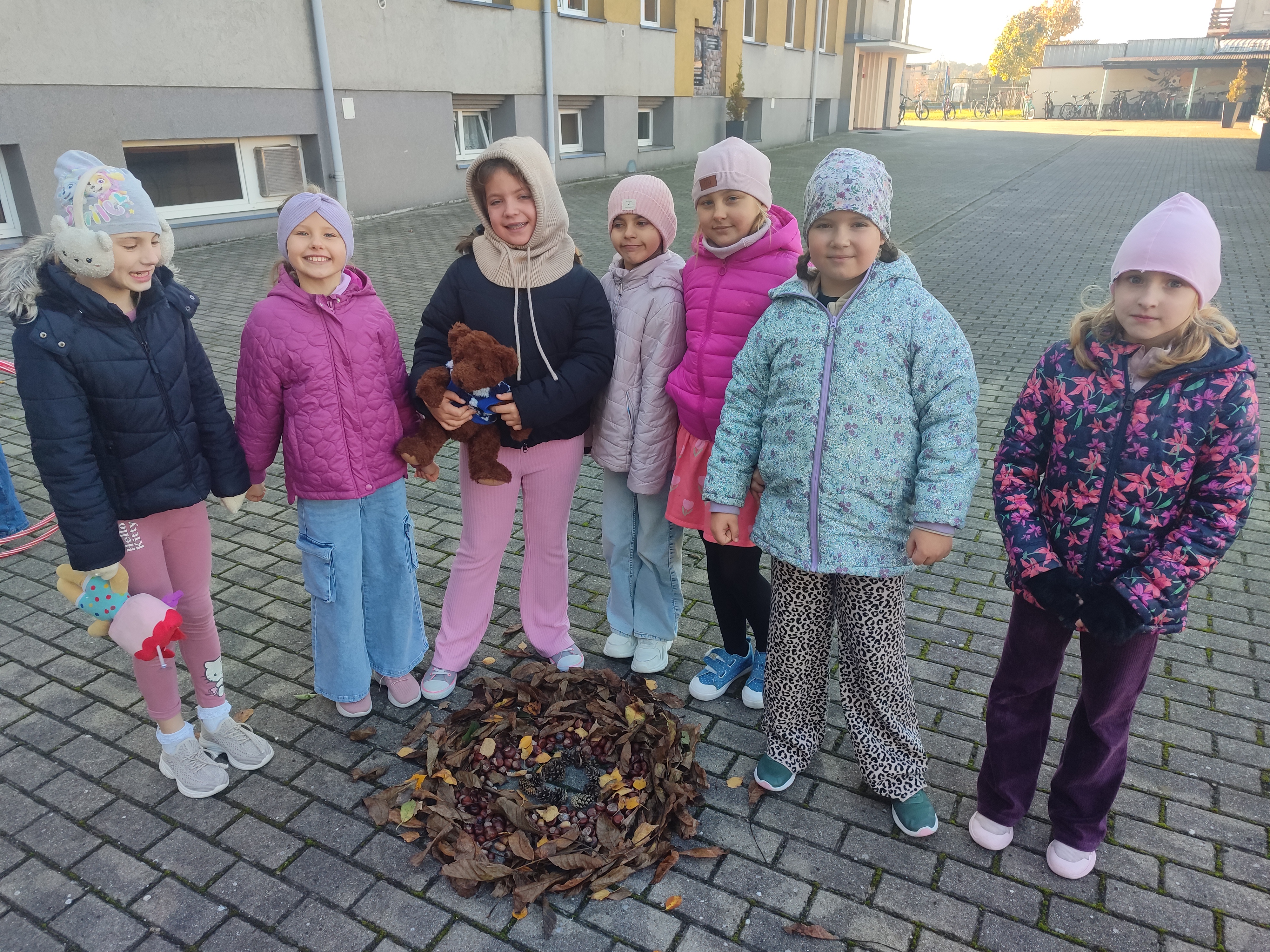 Dodatkowo, uczniowie klas II uczestniczyli w lekcjach na świeżym powietrzu, podczas których tworzyli mandale z elementów przyrody. Zajęcia te sprzyjały relaksowi, dotlenieniu organizmu, poprawie koncentracji i nastroju.