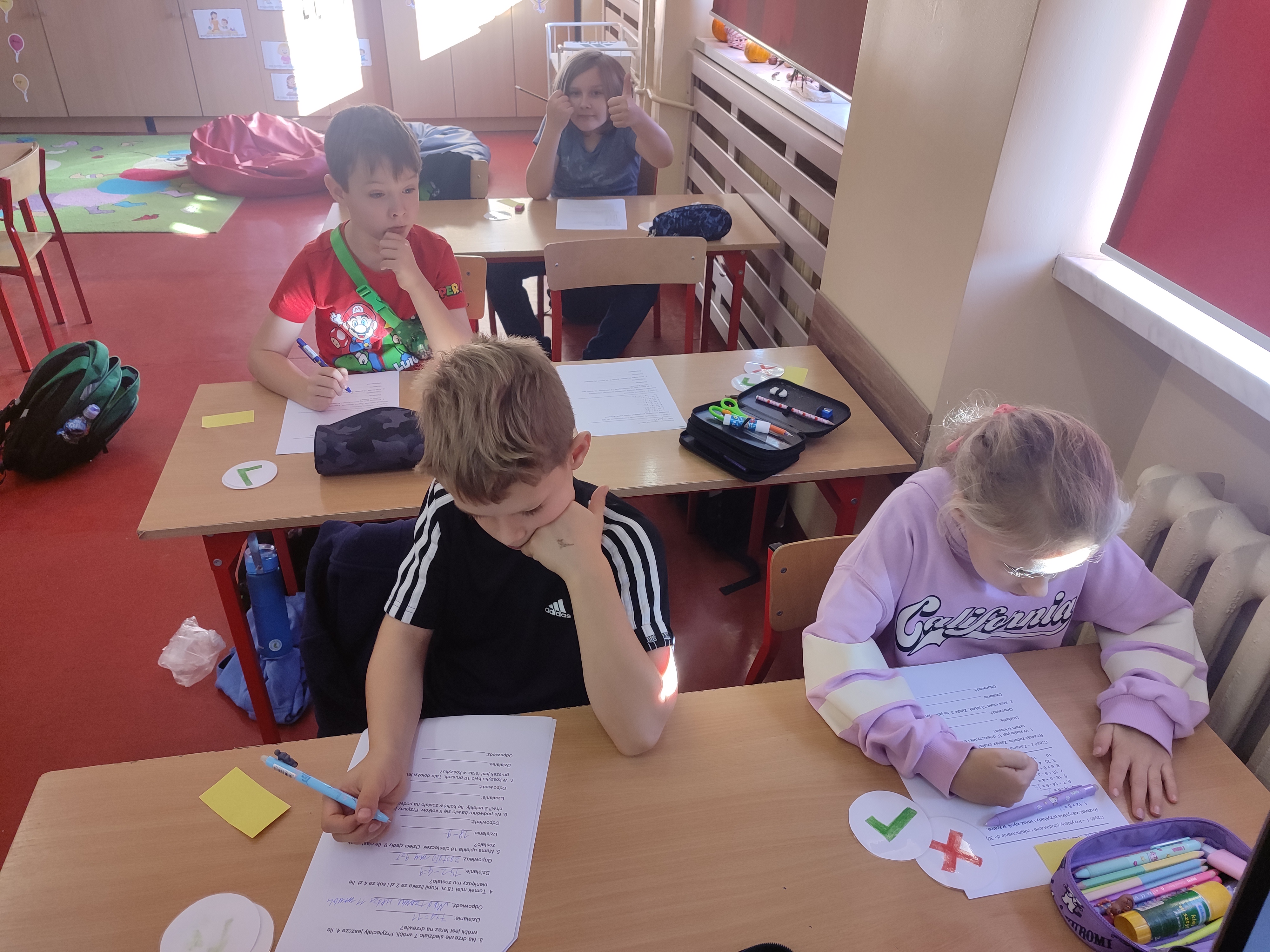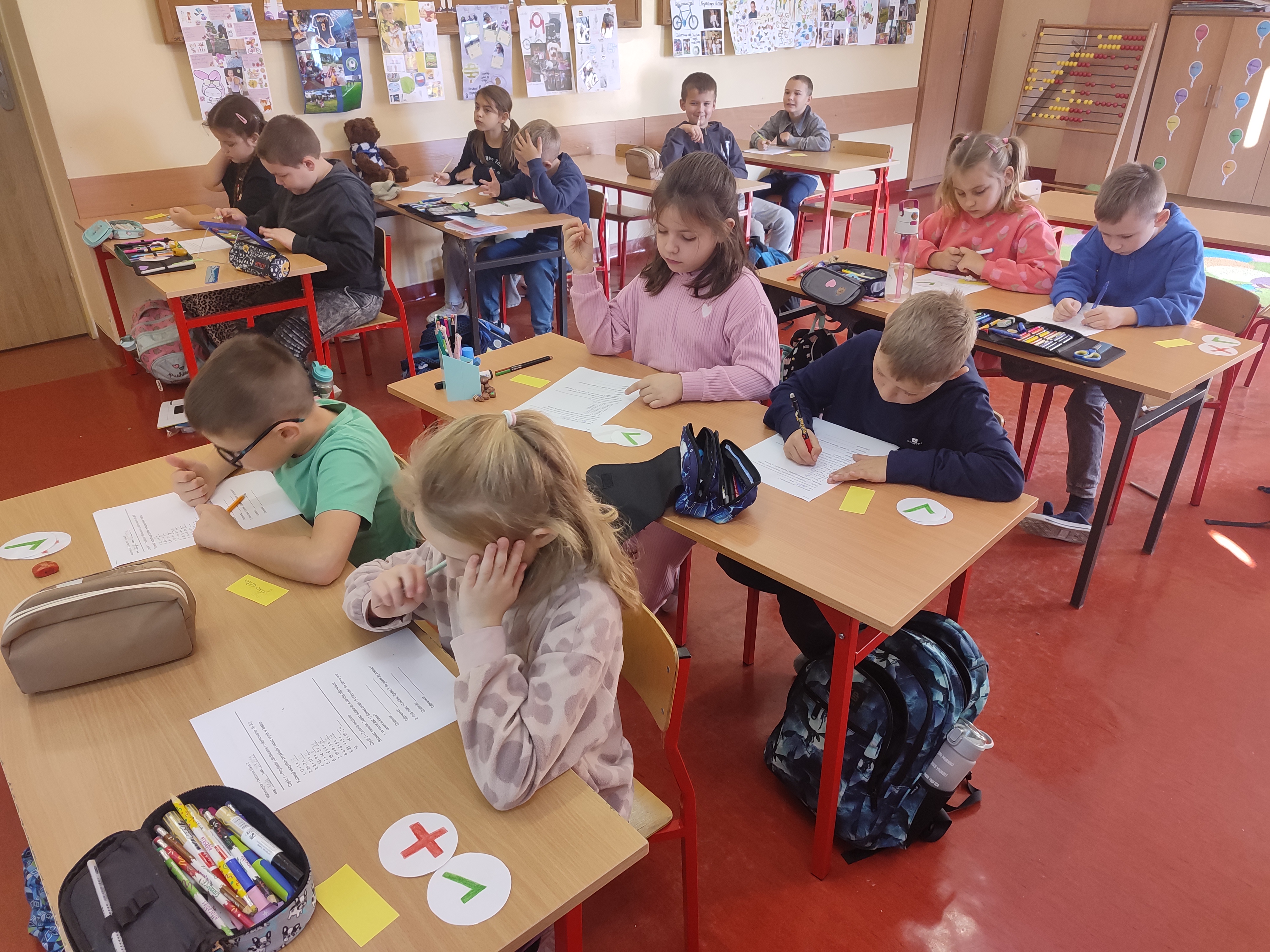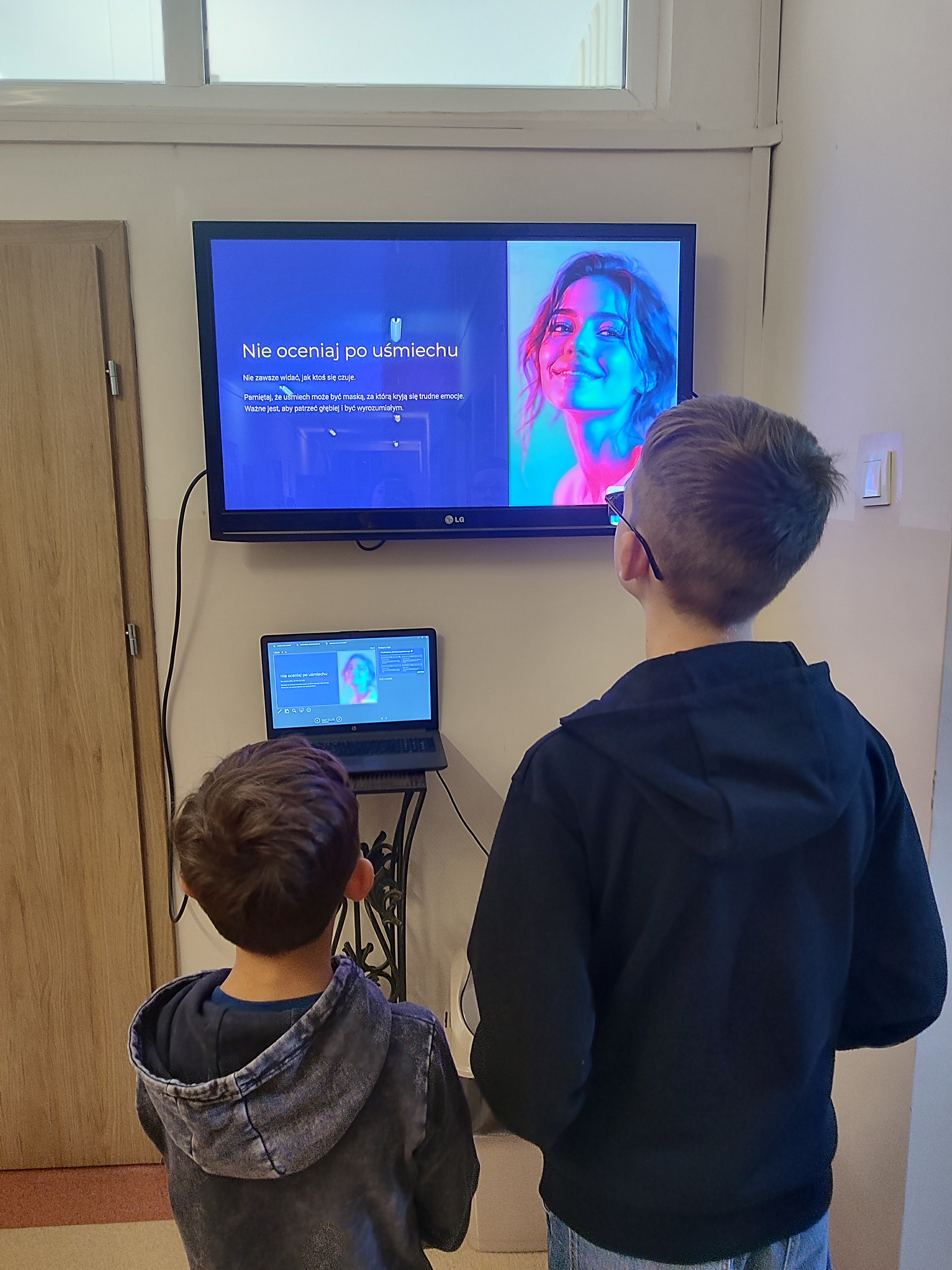 Szczególną formą aktywności była także „cicha lekcja” – prowadzona w skupieniu i ciszy. Jej celem było stworzenie spokojnej przestrzeni, w której uczniowie mogli doświadczyć, jak wyciszenie wpływa na koncentrację, nastrój i komfort pracy, a także nauczyć się doceniać chwilę spokoju w codziennym zabieganiu.