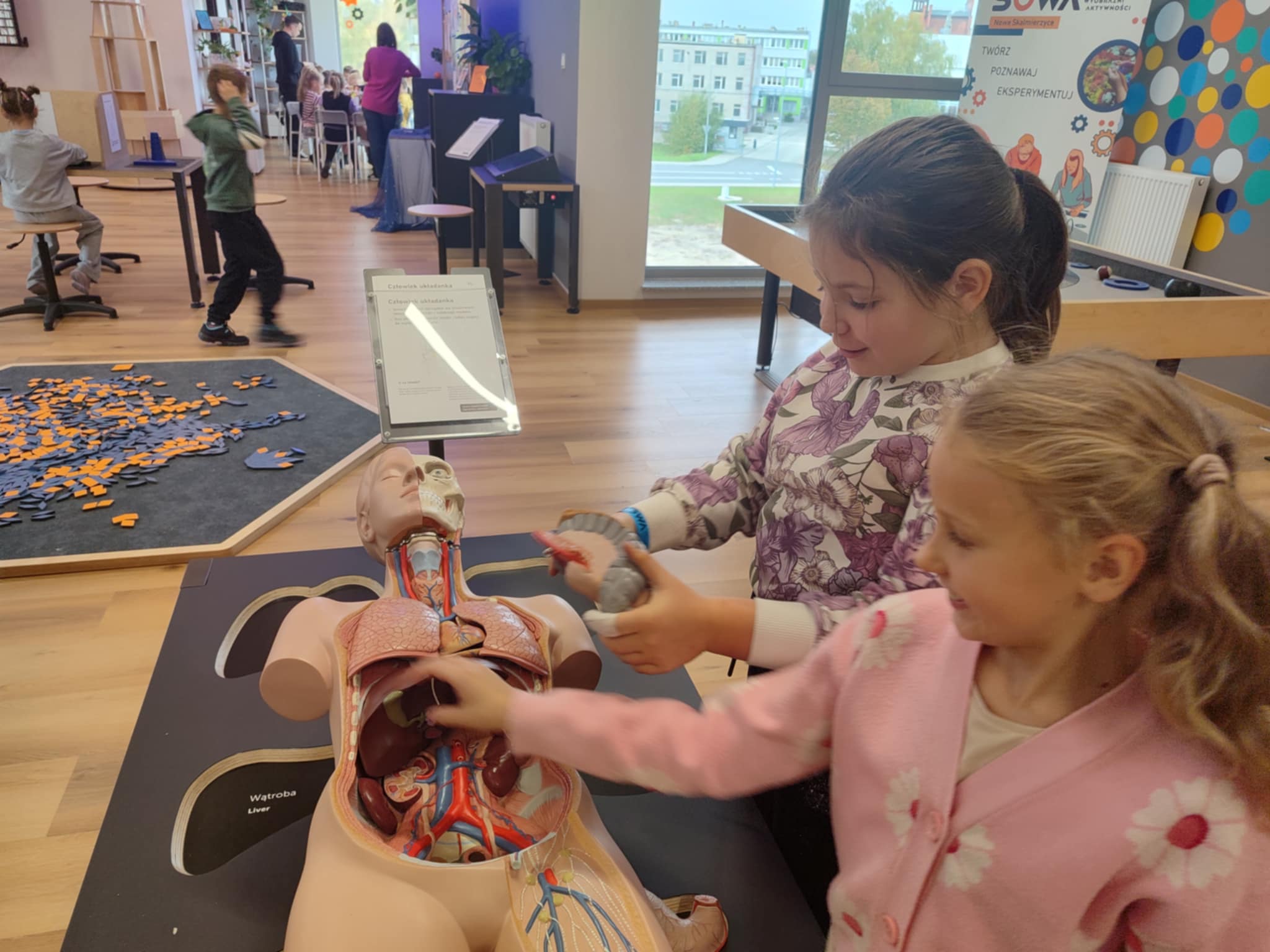 Pierwszym punktem wycieczki było Centrum Nauki SOWA, gdzie mogliśmy samodzielnie przeprowadzać różnorodne doświadczenia i eksperymenty. Interaktywne stanowiska pomogły nam lepiej zrozumieć zjawiska fizyczne, przyrodnicze i techniczne. Nauka przez zabawę sprawiła, że spędziliśmy tam czas bardzo aktywnie i z dużym zainteresowaniem.