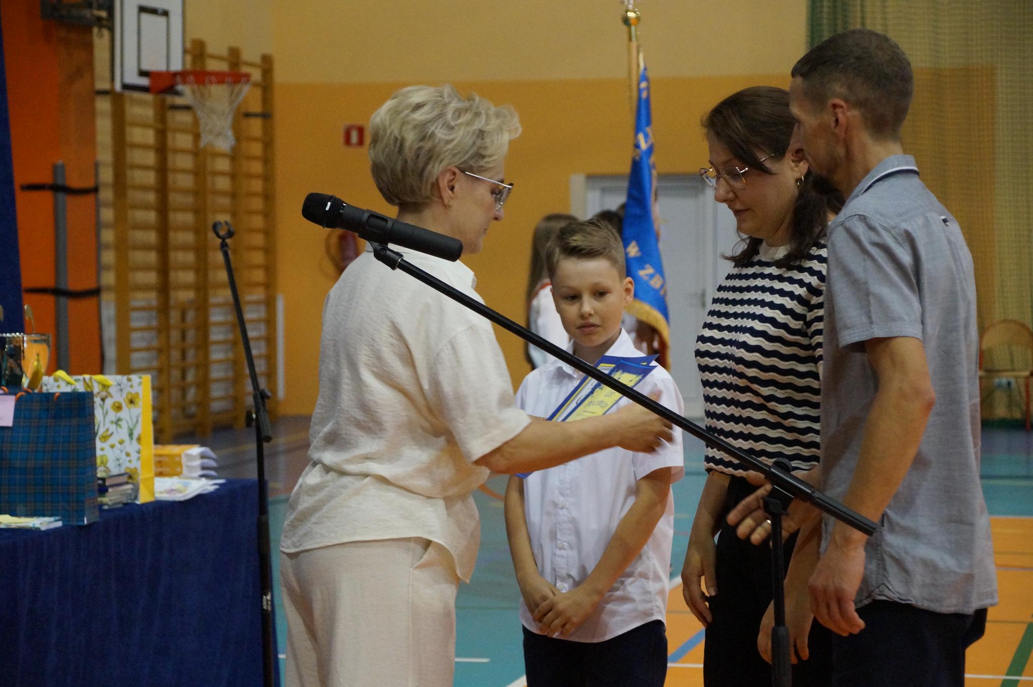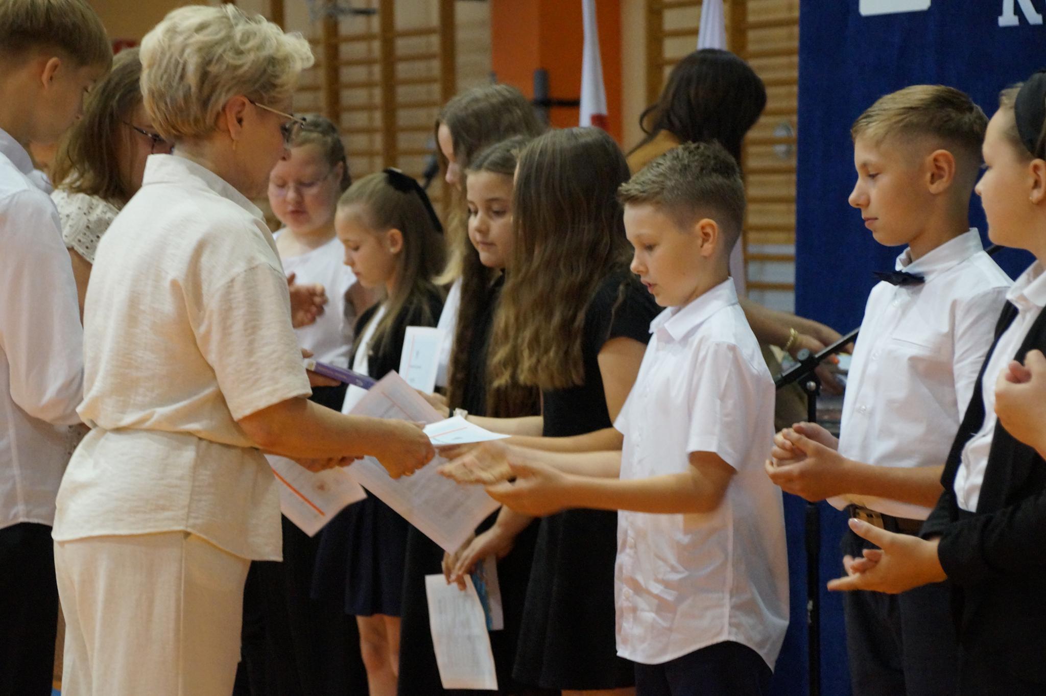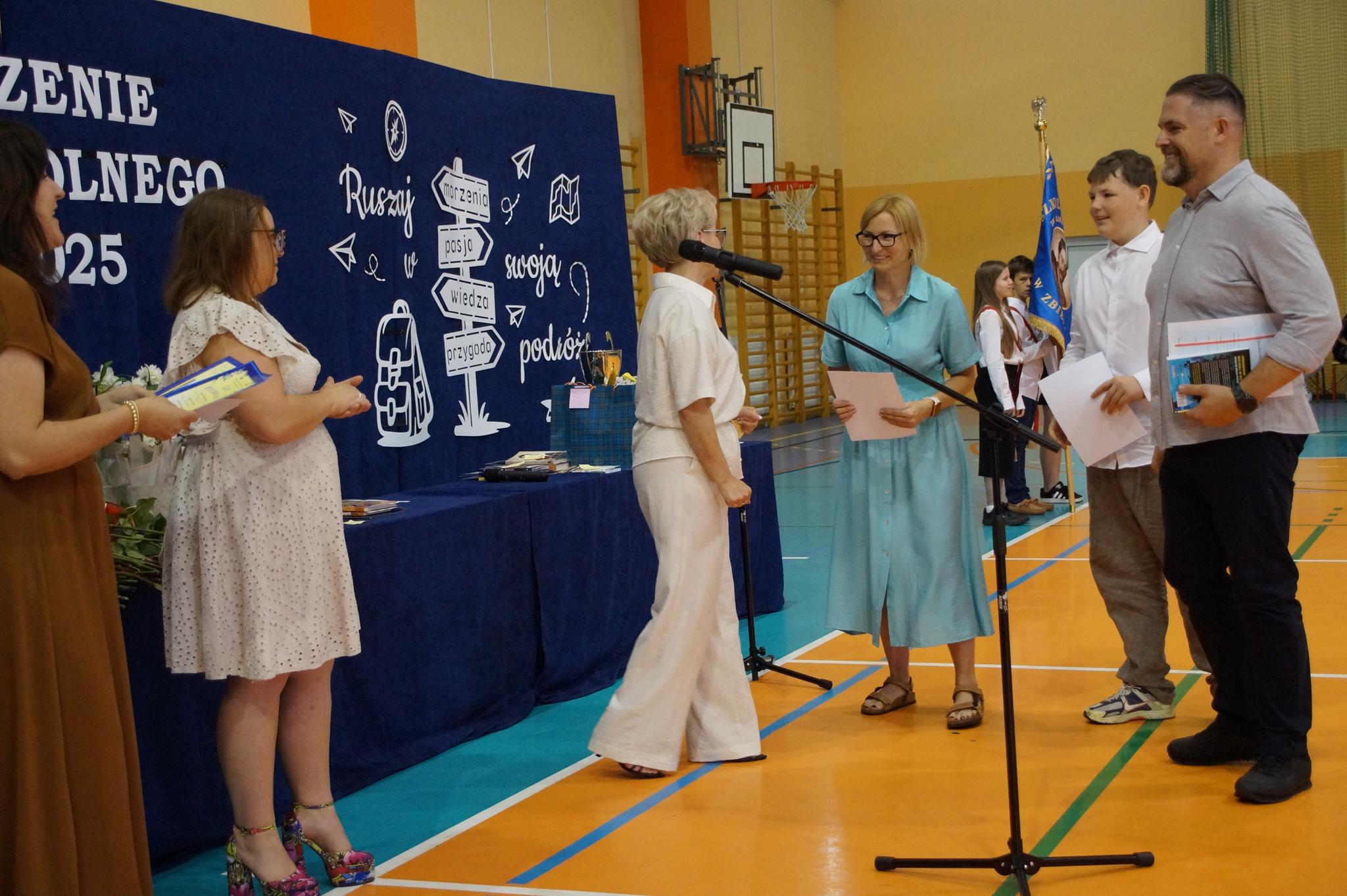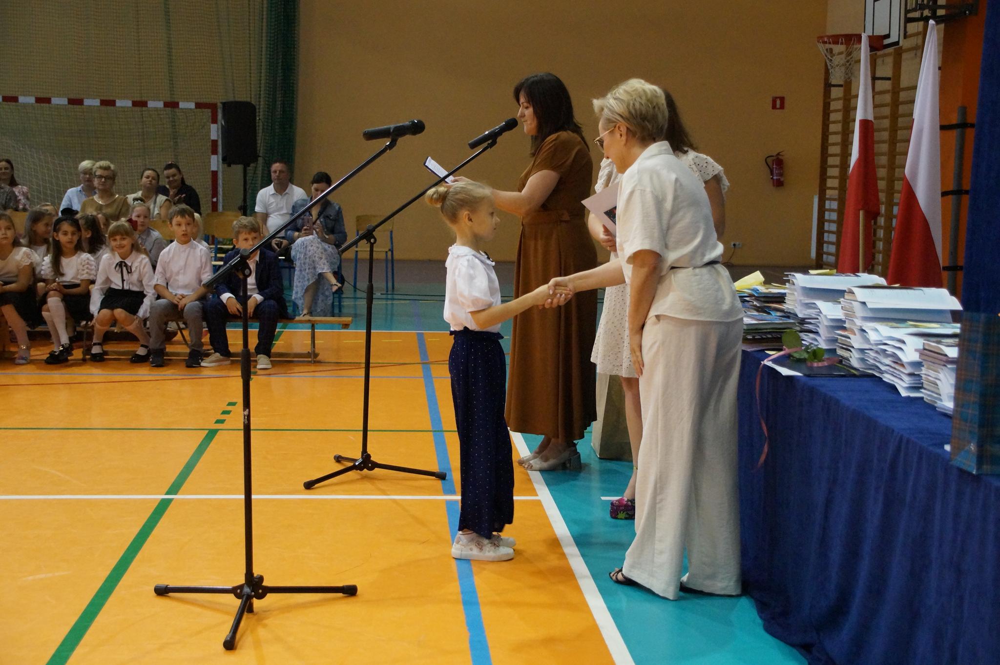 Podczas uroczystości dyrektor Małgorzata Szczucka, wicedyrektor Emila Jagiełło, przedstawicielka Rady Rodziców pani Nicola Guźniczak z wychowawcami wręczyli nagrody i wyróżnienia. Pani dyrektor podziękowała wszystkim za zaangażowanie w realizację szkolnych projektów i przedsięwzięć.