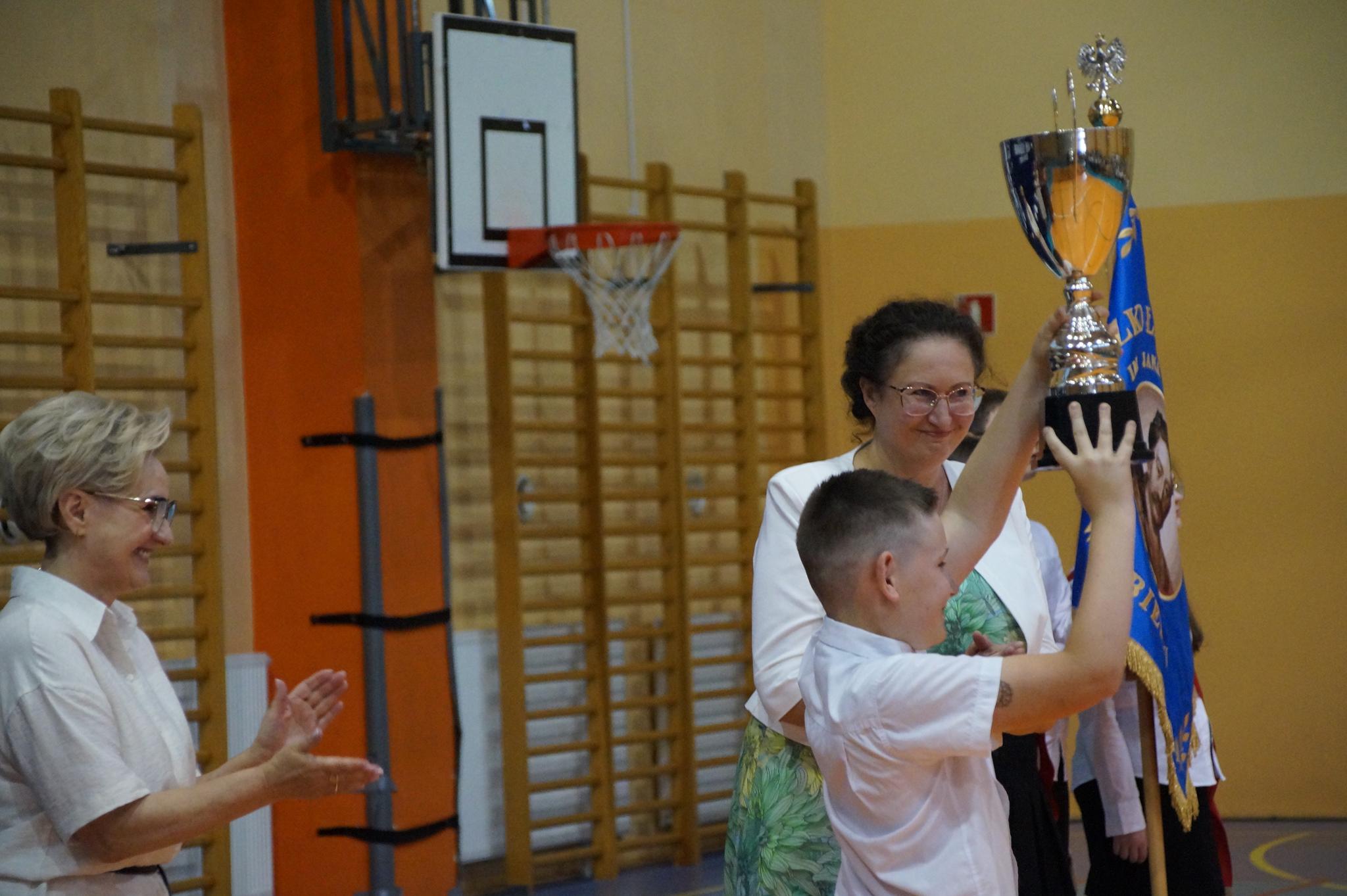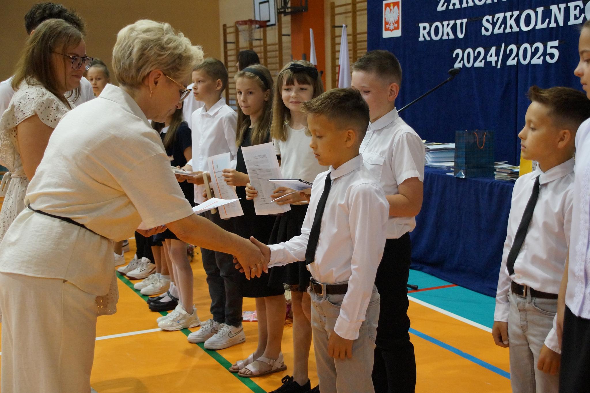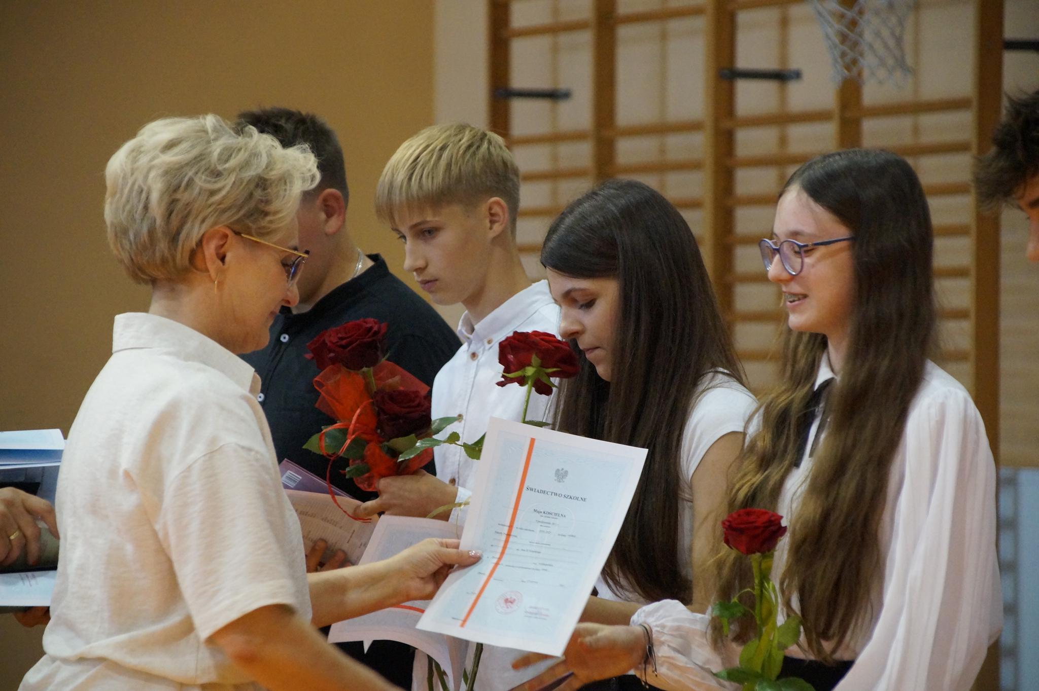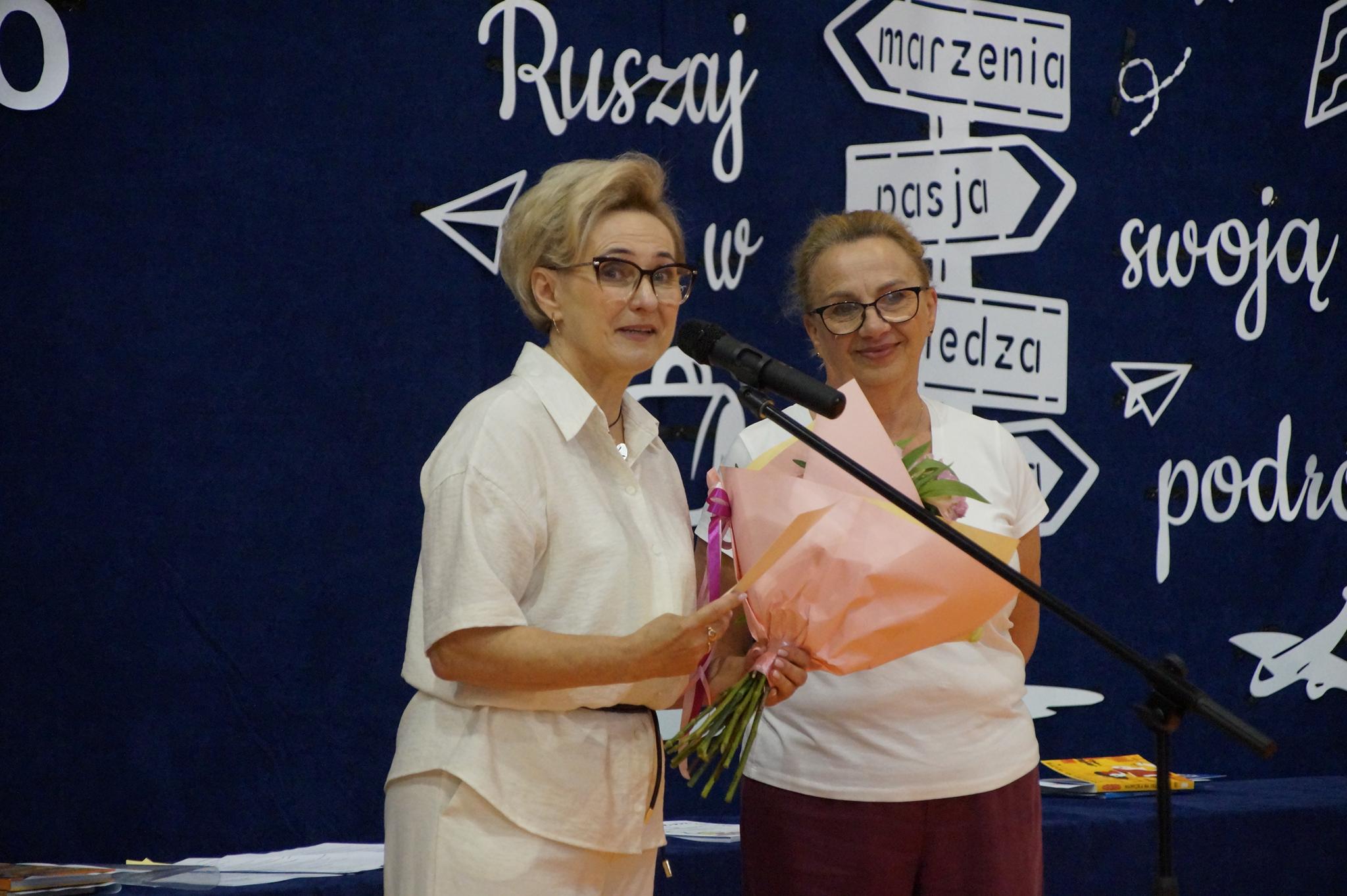 Podczas uroczystości dyrektor Małgorzata Szczucka, wicedyrektor Emila Jagiełło, przedstawicielka Rady Rodziców pani Nicola Guźniczak z wychowawcami wręczyli nagrody i wyróżnienia. Pani dyrektor podziękowała wszystkim za zaangażowanie w realizację szkolnych projektów i przedsięwzięć.